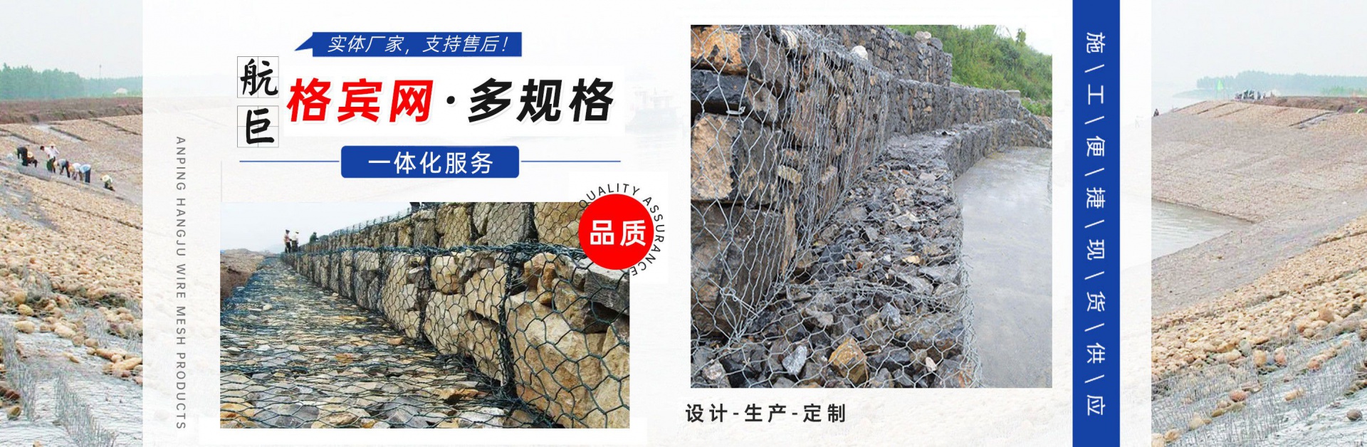 安平縣航巨絲網(wǎng)制品有限公司位于富有“絲網(wǎng)之鄉(xiāng)”美譽的—河北安平縣,此地是世界上最大的絲網(wǎng)集散基地,是華北平原上一顆璀璨的明珠。地處京、津、石三大城市中間,交通便利,是一家集生產(chǎn),加工,銷售為一體的大型絲網(wǎng)廠家。本廠專業(yè)生產(chǎn)各種類型的絲網(wǎng),類型齊全,主要包括:格賓石籠網(wǎng),雷諾護墊,麥克排水墊,加筋麥克墊,市政護欄,防爆籠,主動防護網(wǎng),被動防護網(wǎng),電焊網(wǎng)片,鋼格柵板等產(chǎn)品,形成了針對邊坡支護、基坑支護、山體邊坡綠化、鐵路、高速、公路、江河、堤壩及海塘的防沖刷保護以及水庫、河流截流等不同行業(yè)、不同規(guī)模、不同應(yīng)用的絲網(wǎng)產(chǎn)品和針對性解決方案,是國內(nèi)最有影響力的絲網(wǎng)產(chǎn)品供應(yīng)商。技術(shù)指標(biāo)達到國家同類產(chǎn)品標(biāo)準(zhǔn),可以接受較大的定單并保證質(zhì)量和生產(chǎn)期限。 公司始終堅持誠信為本、質(zhì)量第一、客戶至上的經(jīng)營理念,本著互惠互利的精神,希望與國內(nèi)外朋友共同合作,為您提供優(yōu)質(zhì)的產(chǎn)品和服務(wù)。我公司在創(chuàng)新管理中求發(fā)展、創(chuàng)新經(jīng)營中求生存。把企業(yè)標(biāo)準(zhǔn)化管理、定額管理、計劃管理,公司十分注重把握市場經(jīng)濟的信息脈絡(luò),用現(xiàn)代網(wǎng)絡(luò)技術(shù),以科研開發(fā)為原動力,與科技院校及相關(guān)專家密切合作,共同研制開發(fā)21世紀(jì)適用顧客需求的相關(guān)產(chǎn)品。 安平縣航巨絲網(wǎng)制品一直是以“質(zhì)量精良,交貨及時,價格合理,服務(wù)周到”的宗旨來為廣大客戶服務(wù);并且本著“質(zhì)...